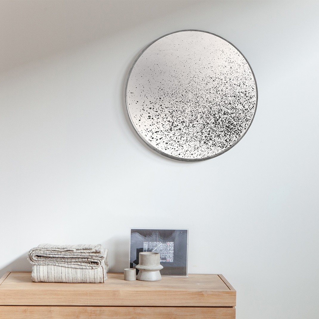 Nástěnné kulaté zrcadlo Clear light aged spojuje funkčnost s uměleckým objektem. Je zasazeno do dřevěného rámu s odrazem historické patiny, která zaujme na první pohled.