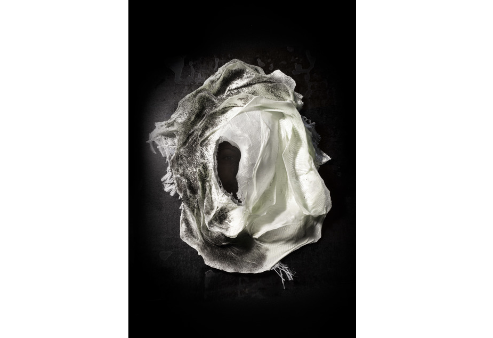 Skleněná vlákna, skleněná textilie, kovové piliny, zavěšené na černém zrcadle.